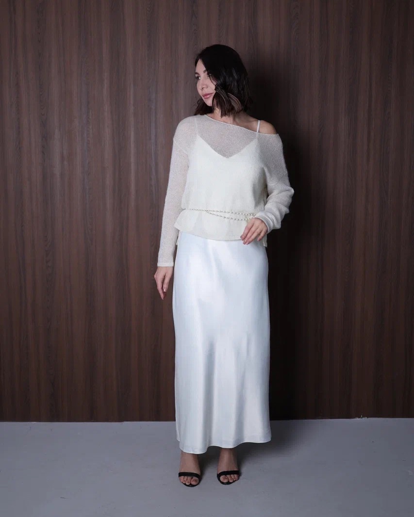 Платье-комбинация из натурального шёлка в нежном молочном оттенке — символ...